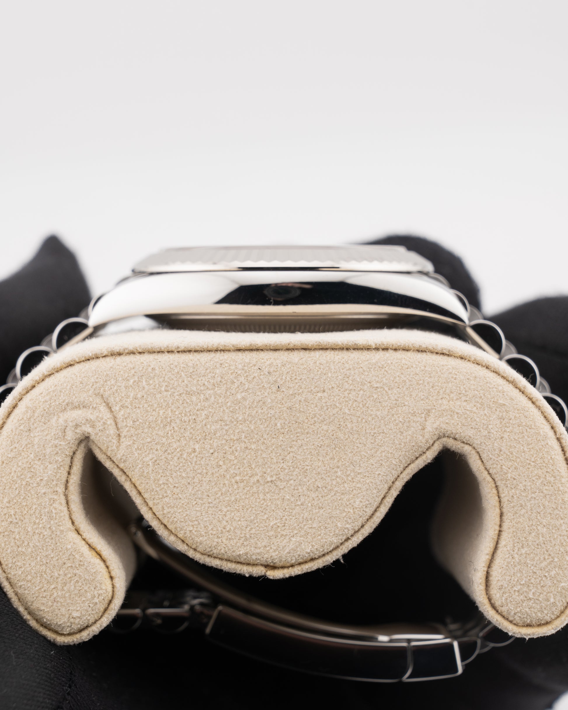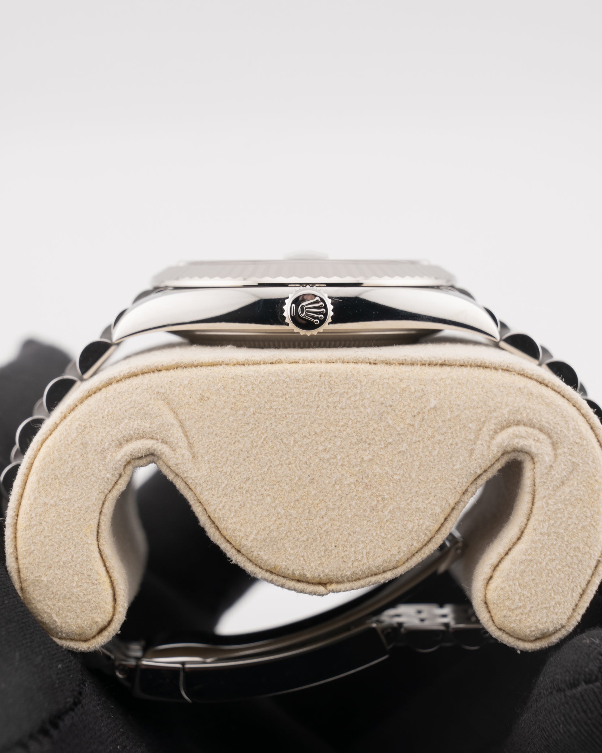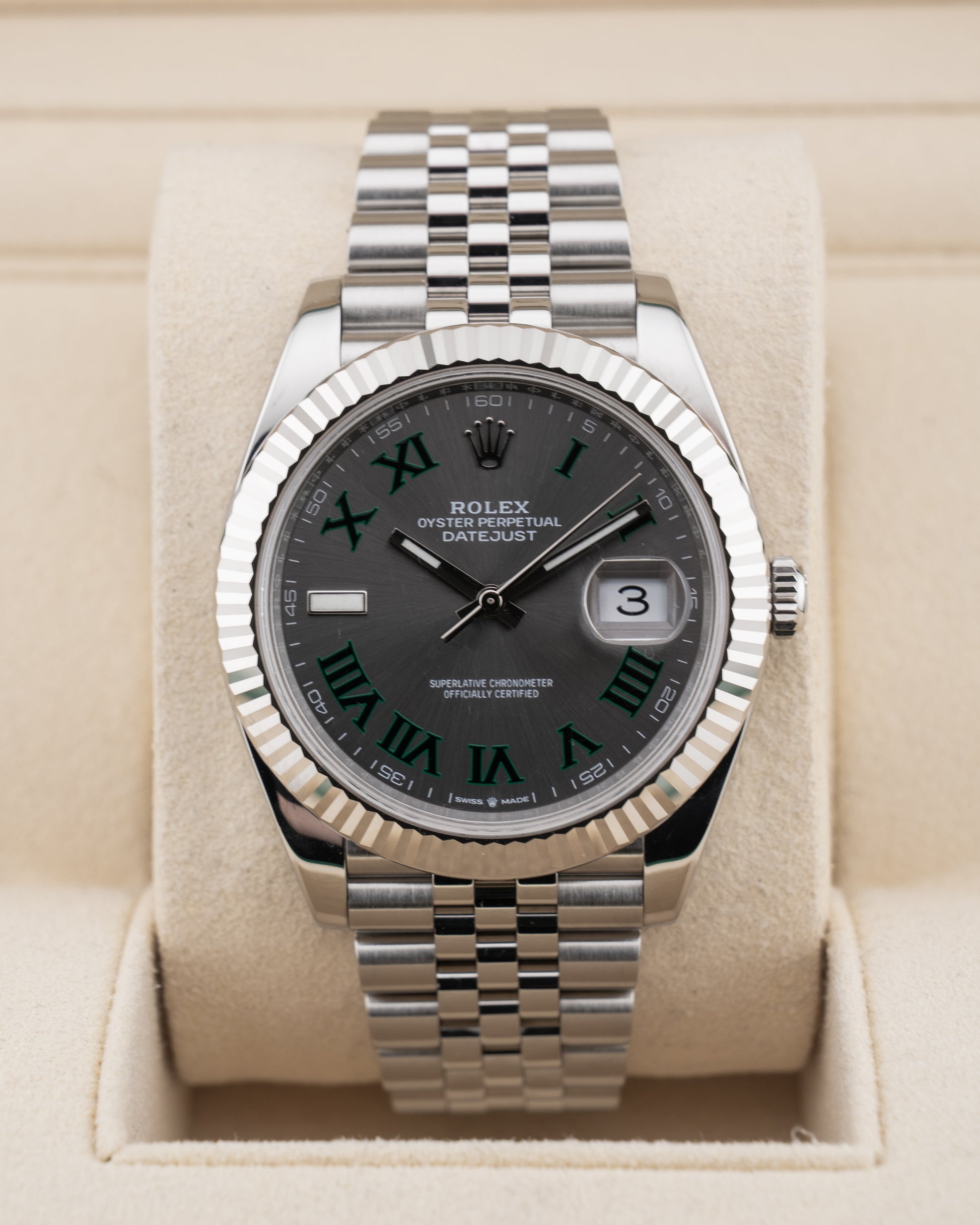 Zum Verkauf steht hier eine wunderschöne Rolex Datejust Wimbledon in 41mm. Die Uhr ist in nahezu neuwertigem Zustand und läuft perfekt. Zusätzlich kommt die Uhr im absoluten Full Set mit original Box und Papieren. Die Uhr stammt aus dem Jahr 2020 hat aber Mitte 2025 einen kompletten Rolex Service bekommen und hat dadurch noch 1.5 Jahre Garantie.